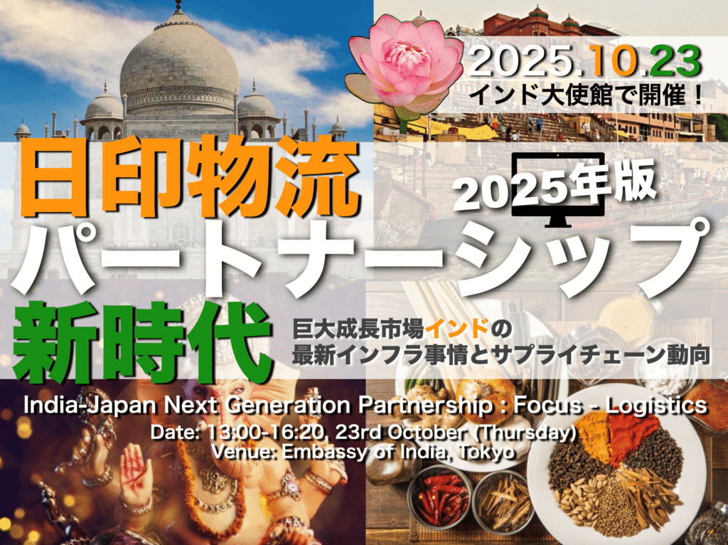 インド大使館および LOGISTICS TODAY 主催のイベント「日印物流パートナーシップの新時代〜巨大成長市場インドの最新インフラ事情とサプライチェーン動向」に、当社インド現地法人の駐在員がオンライン登壇いたします。